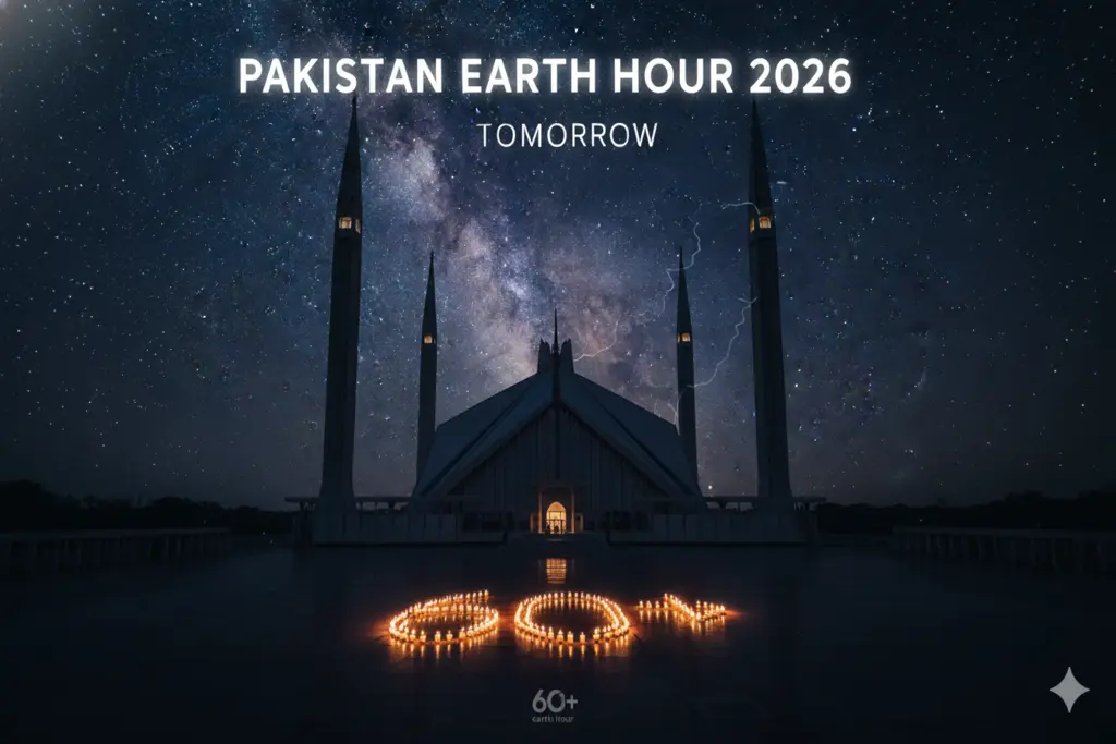 Earth Hour will be observed across Pakistan on Saturday, March 28, 2026. The symbolic switching off of lights will take place from 8:30 PM to 9:30 PM local time.