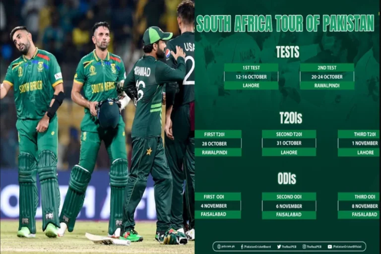 The current World Test Championship 202325 champions, South Africa will visit Pakistan where she will play two Tests, then three T20Is and three ODIs between the end of October and beginning of November.