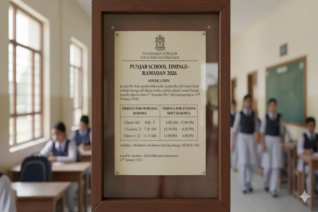 Punjab School Education Department (SED) has officially announced new schedules during the sacred month of Ramadan 2026. In the notification of February 16, 2026, all the schools (public and private) in the province will follow an adapted schedule to allow students and the staff members to accommodate fasting.